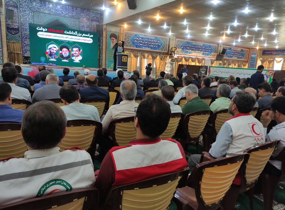 وی ضمن گرامیداشت یاد و خاطره شهدای دولت تصریح کرد: صبح امروز مراسمیبا حضور کلیه دستگاههای اجرایی بوشهر ، اقشار مختلف مردم ، همچنین کارکنان و اعضای جمعیت هلال احمر در مصلی جمعه این شهرستان برگزار شد.